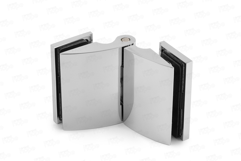 Это наиболее распространённый вариант. Петля для стеклянных дверей фиксируется зажимным способом без сверления полотна. Такие петли для стекол удобны в монтаже и подходят для стандартных дверей из закалённого стекла средней массы. Их часто используют в жилых интерьерах и душевых зонах.