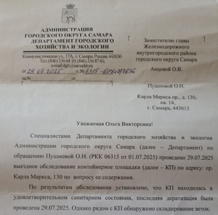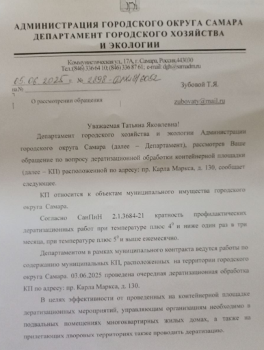Татьяна Яковлевна, глава домоуправления, писала семь раз в разные инстанции. В направленных Татьяне Яковлевне ответах содержится противоречивая информация об ответственных сторонах. В одних написано, что балансосодержателем площадки является городской департамент хозяйства и экологии. И именно от них приходили уведомления о дератизации, которой никто так и не заметил. Часто просто приходили отписки.