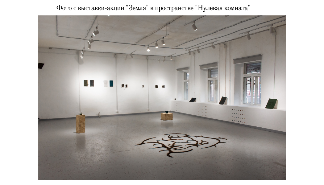 Другой проект, за который меня номинировали, это персональная выставка "Территория" в пространстве ОССИ "МИ", где я выставлял живопись из земли, глины, ржавого железа, гипса, рубироида. А также фотографии этих работ, своеобразную картографию мест. Не могу назвать в полной мере это живописью, я бы назвал это медиумом территории.