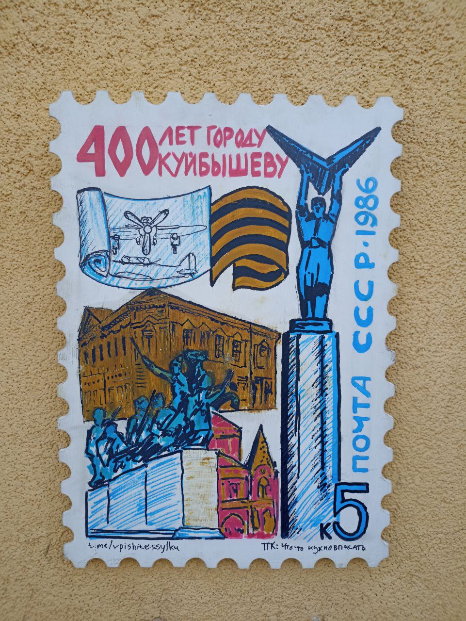 Кстати говоря, один из авторов этого проекта оставил Самаре подарок. Он нарисовал красивейшую марку в честь юбилея нашего города и повесил ее в историческом центре.