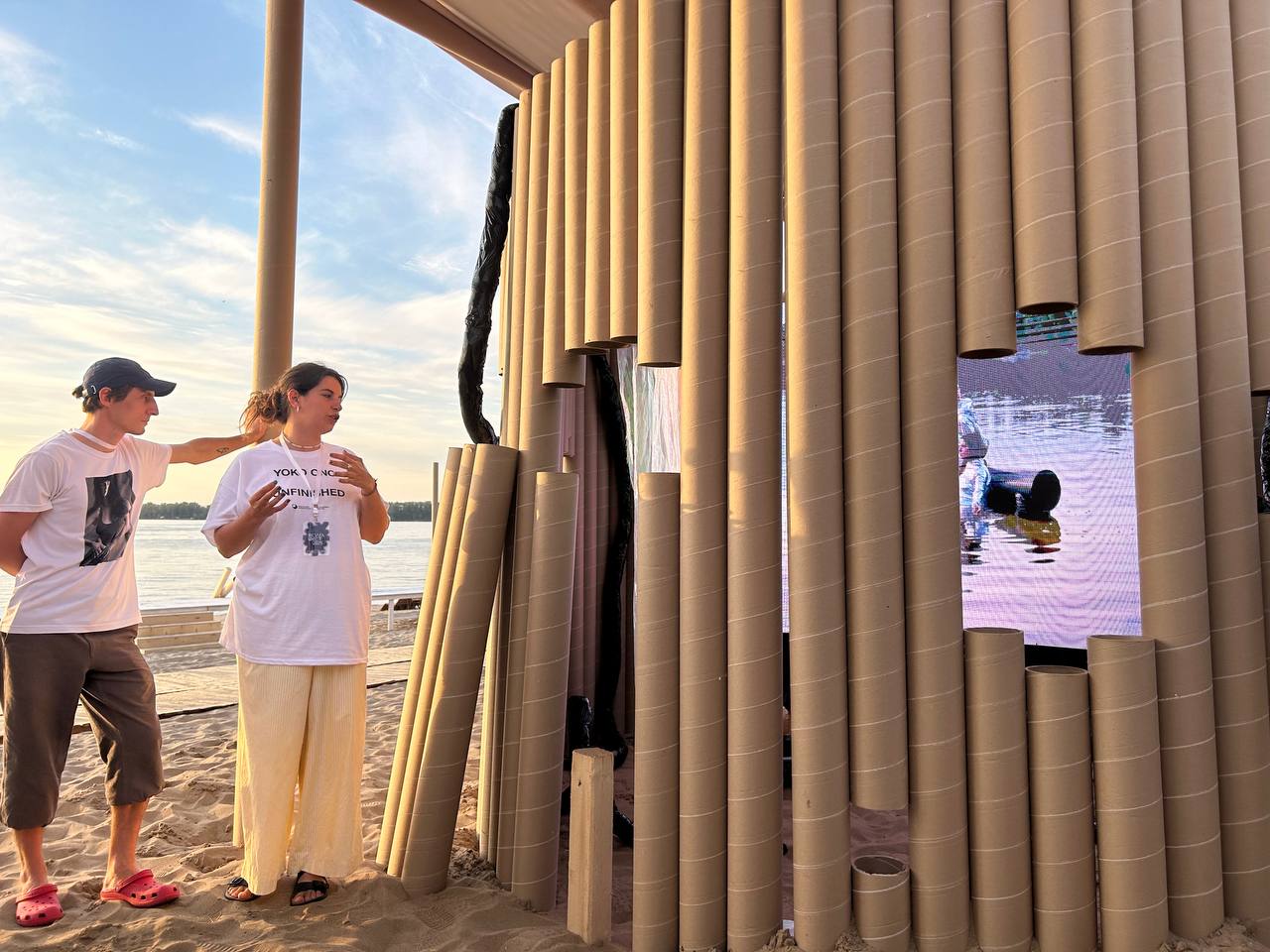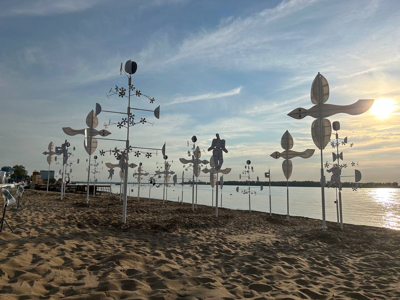 Каждый из художников постарался сделать свою инсталляцию эксклюзивной и непохожей на другие. Гости из Омска, например, свою площадку от зрителей закрыли, оставив лишь небольшие прогалы. Это аллегория на их реку Иртыш, в которой много лет никто не купается – дело в санитарных нормах, которые не позволяют безопасно плавать в этом водоеме. Именно поэтому местные жители никогда не заходят в реку, а только лишь смотрят на нее. Согласитесь, нам, самарцам, проводящим в Волге все лето (а иногда и осень, и весну), очень сложно представить подобную ситуацию.