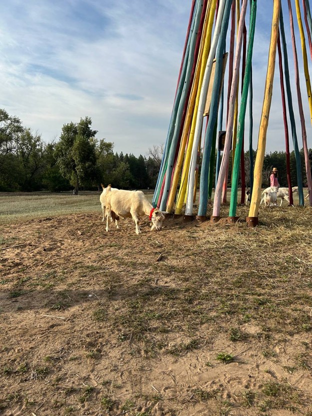 Экскурсия затрагивает одну десятую часть острова, но даже эта площадь кажется очень весомой. Помимо полей, прекрасной природы и гусей, здесь можно увидеть потрясающий арт-объект, возведенный еще в прошлом году. Возле него пасется стадо милейших коз, которые все же забирают внимание приезжих на себя.