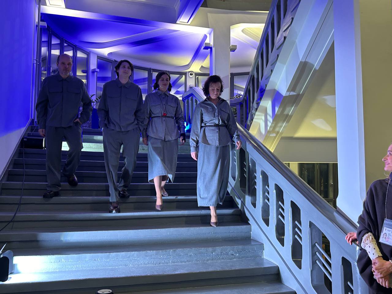 Все начинается в холле на втором этаже — там четыре актера, которые будут сопровождать нас на протяжении всего культурного мероприятия, приветствуют зрителя и отводят его на заранее приготовленное место. Необычен тот факт, что все разворачивается прямо посреди выставочного зала, где картины великих художников и арт-объекты придают особую атмосферу. Мы расскажем вам о каждом представлении, но без спойлеров — только подогреем интерес.