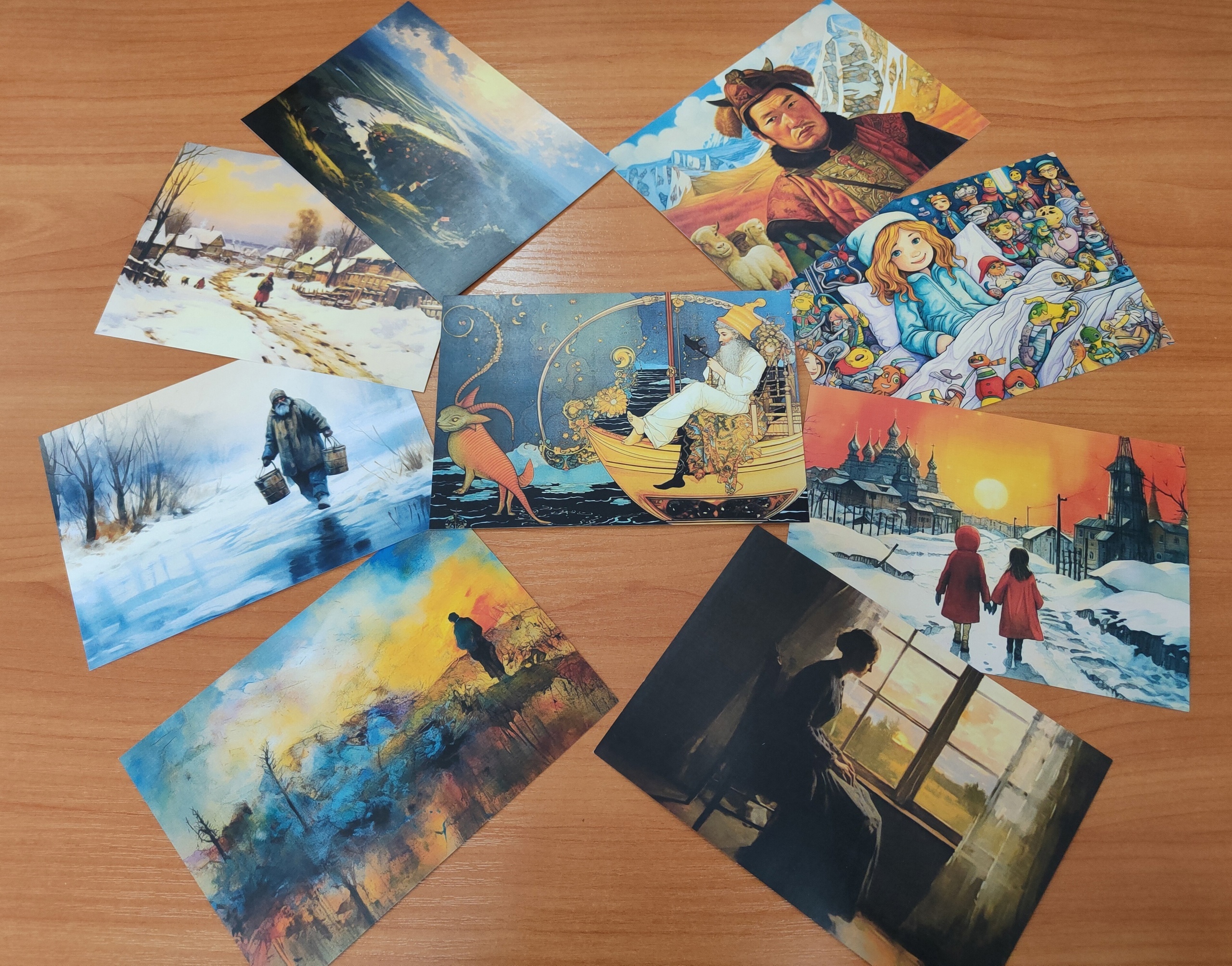 Но основная деятельность — это не подобные развлечения, а проекты: картины, открытки, инсталляции и диджитал-продукты. Самая масштабная история — подарок городу на прошлый день рождения от компании «Волга документ»: мы бесплатно сделали 436 тысяч открыток с дизайном от нейросети на 436-ой день рождения Самары и отправили их жителям.