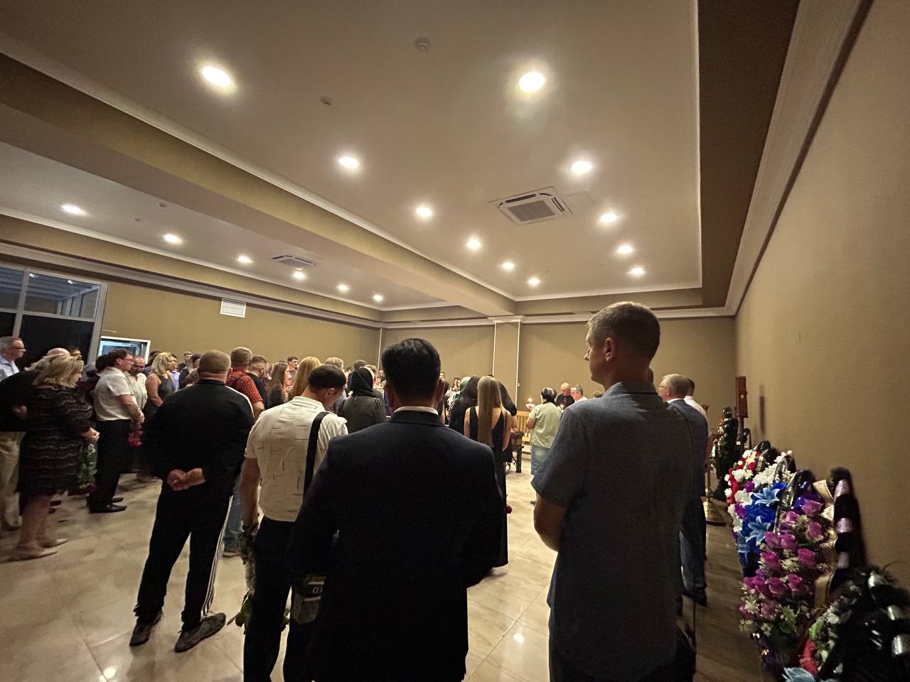 Прощание началось в 13:00 в зале под номером 3. Это помещение было выбрано не просто так – оно самое большое из имеющихся. Однако даже 120 квадратных метров не хватило, чтобы вместить всех желающих проводить Анатолия Кузнецова в последний путь. У входа стояло множество людей, которые ждали своей очереди подойти к почившему, возложить цветы и сказать ему на прощание самые трепетные слова.
