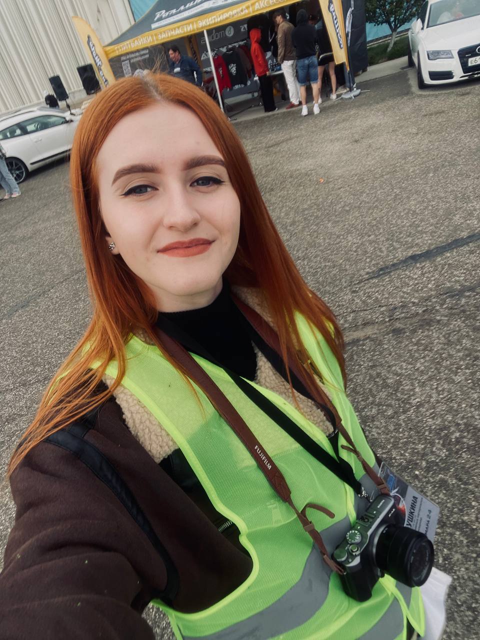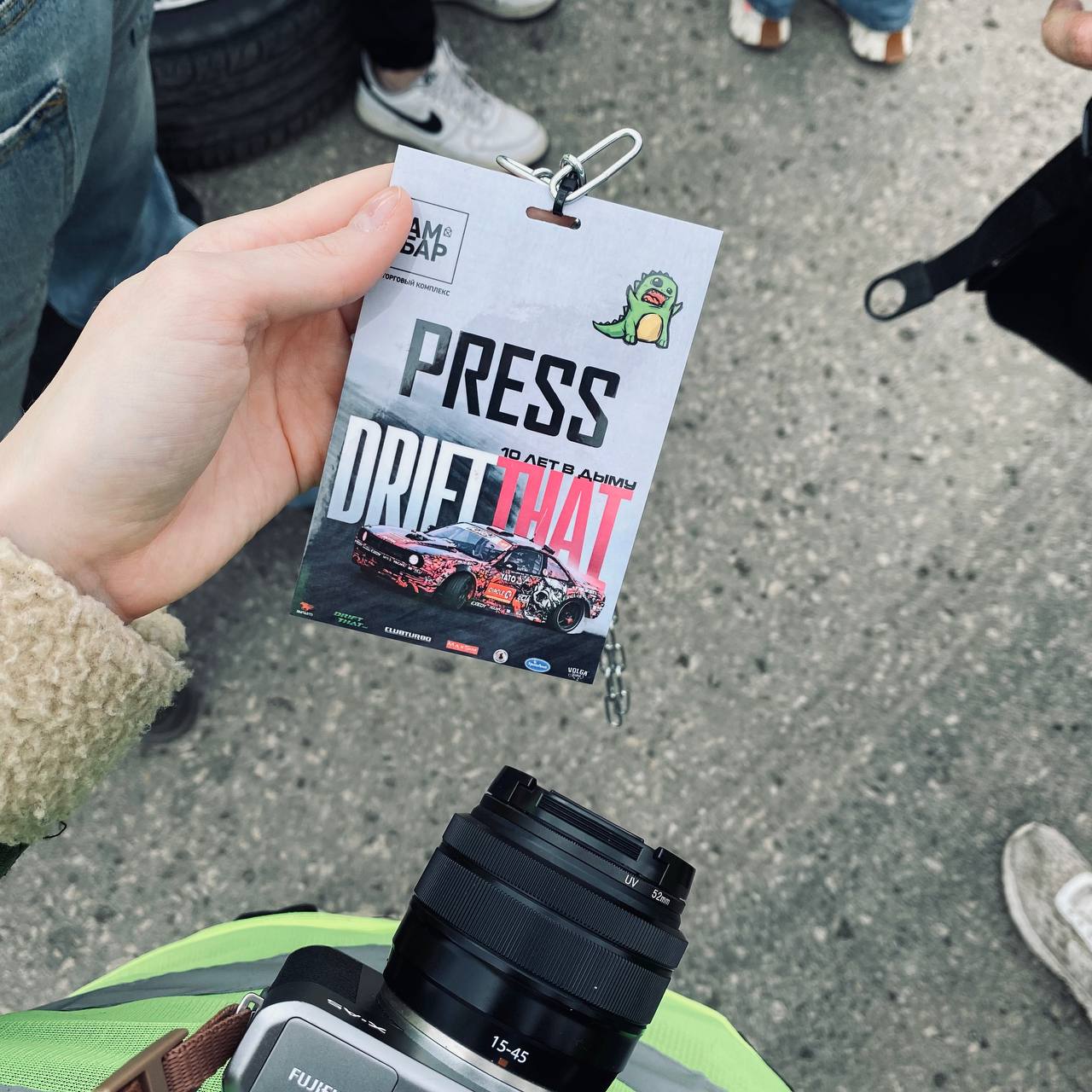 Припарковалась. Нацепила яркую жилетку и бейдж. И вот иду к организаторам. Меня проверяют по спискам, и я прохожу к треку. В это время на трассе стоит рёв двигателей и валит дым из-под колёс. После небольшого инструктажа для прессы иду занимать удобное место, чтобы сделать крутые кадры!