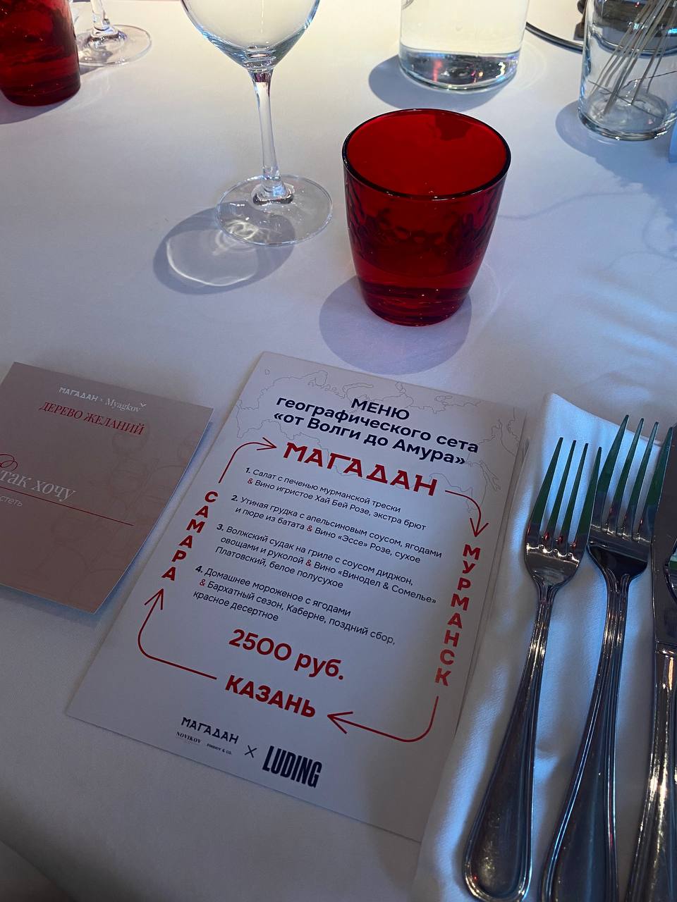 Меня провожают за круглый стол прямо в центре зала. На нём лежит распечатанное меню нашего вечера. Ведущий начал объявлять, что нас ждет путешествие от Мурманска, через Казань, и до Самары. Ого! Будем смотреть, чем нас таким интересным накормят.