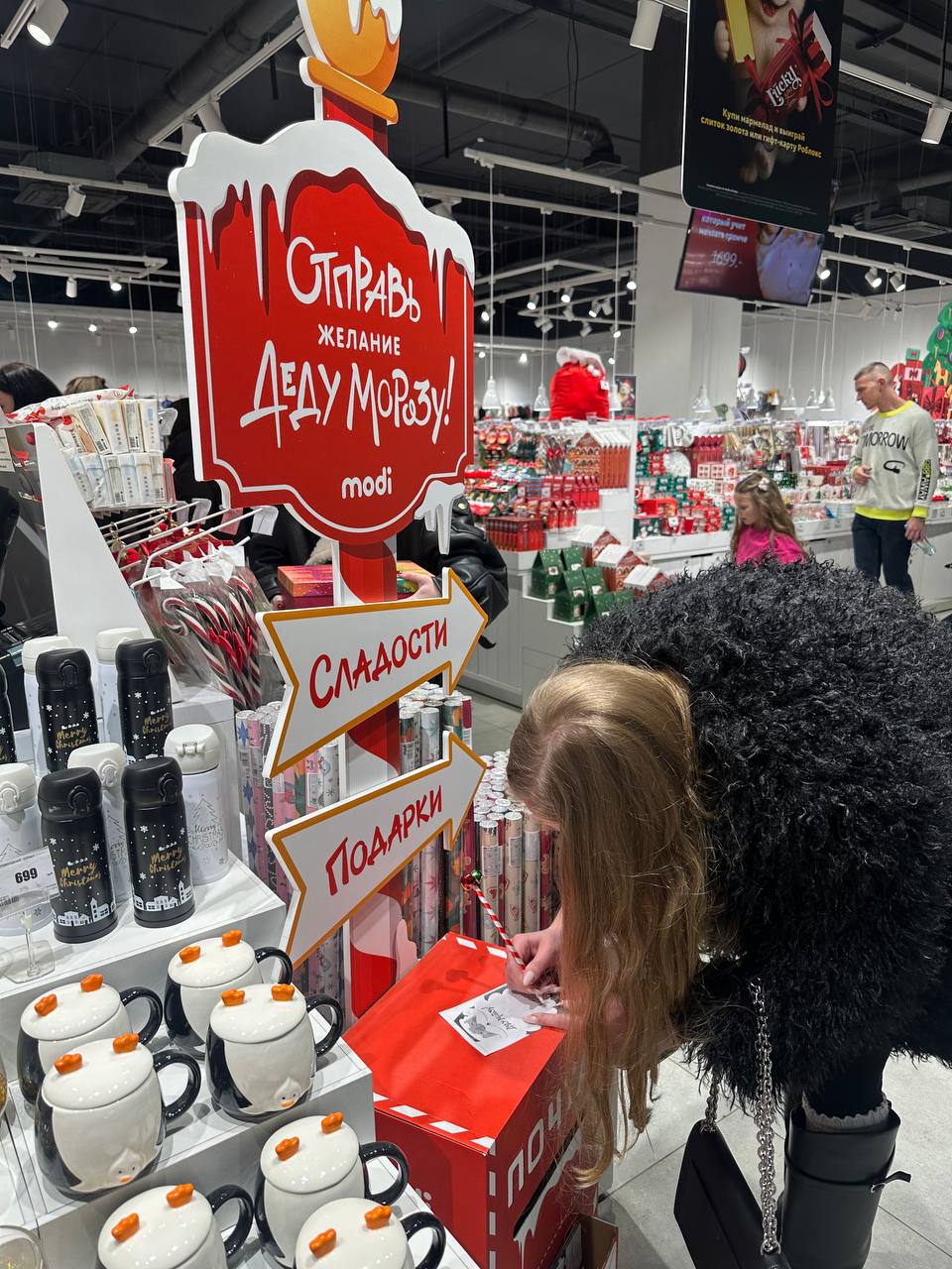 На входе в магазин стоит почта Деда Мороза, куда ребенок может опустить письмо со своим заветным желанием. Взрослым, конечно, никто не запретит это тоже сделать.