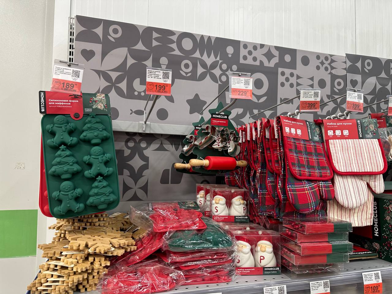 «Лента» стала нашей конечной точкой, где мы нашли товары для готовки, дома и на подарки. Сюда рекомендуем идти именно за вещами для кухни. Например, нам приглянулись формочки для печенья в виде пряников и елочек, красные скалки, прихватки в клеточку, кружки в виде мишек и с очками. А еще здесь продаются свечи в виде мандаринов. Правда, цитрусовый аромат они не издают.
