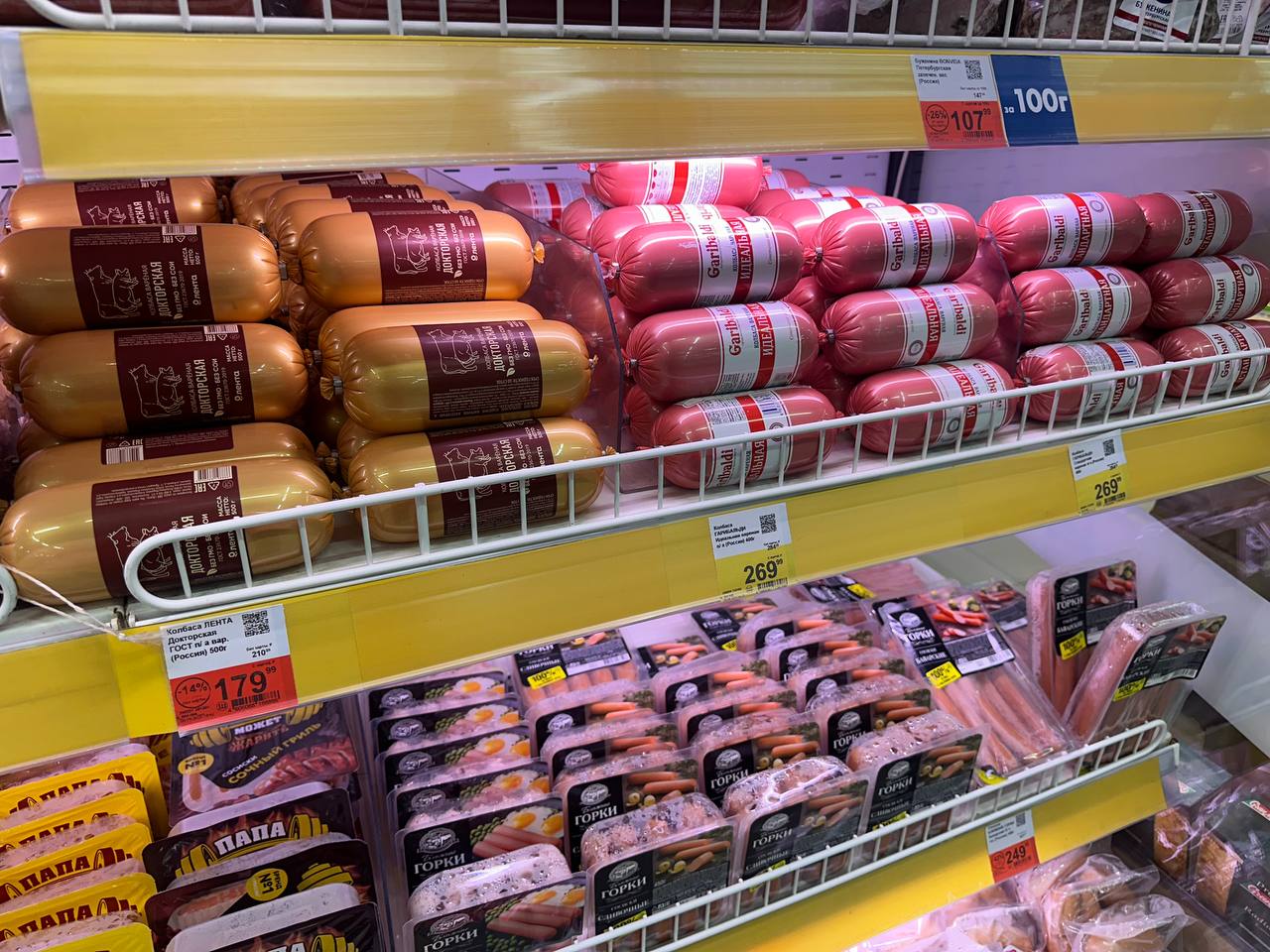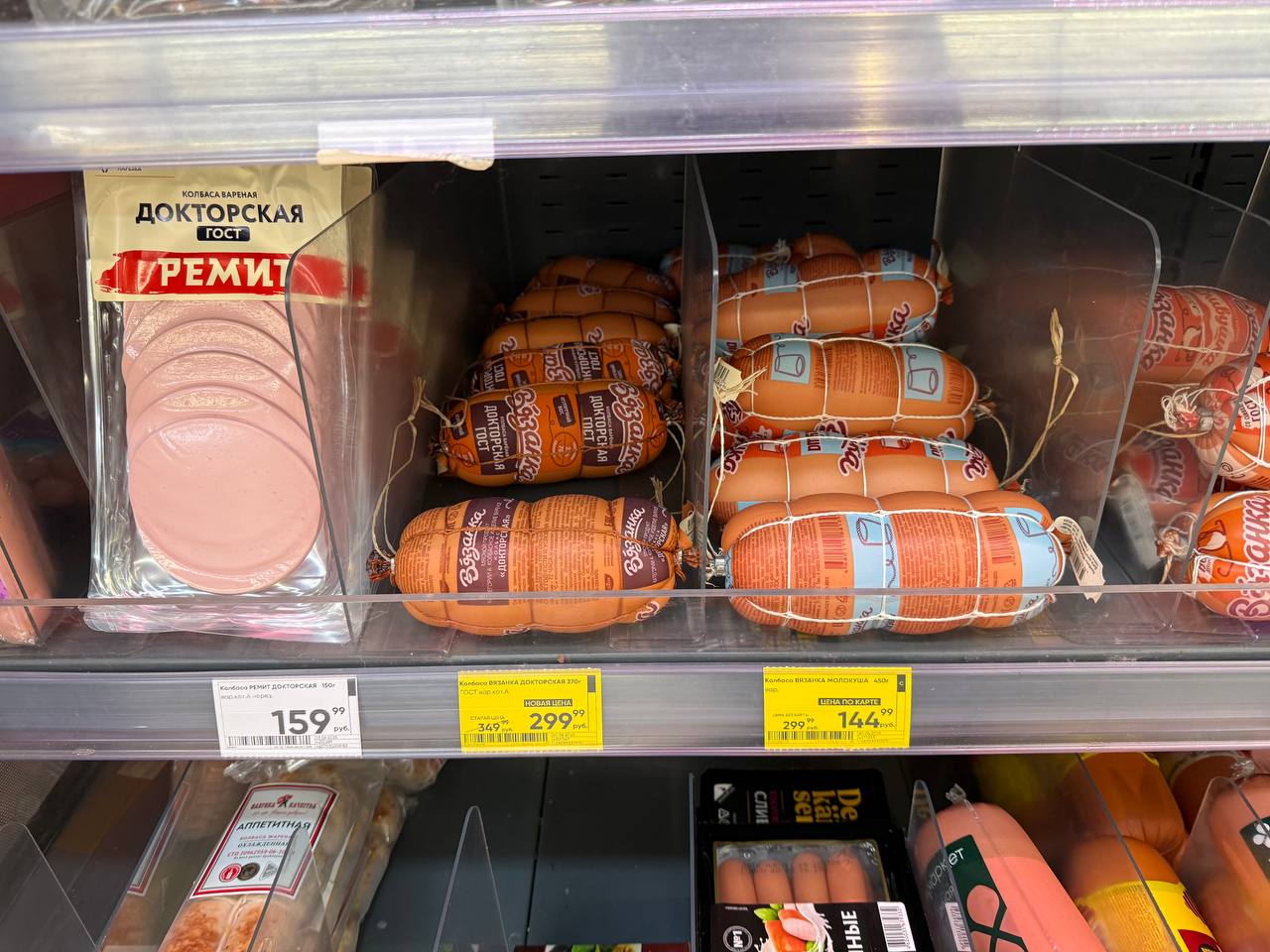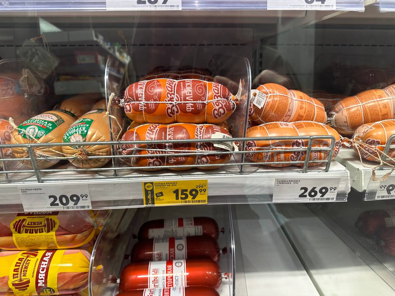 Десяток яиц, как первой, так и нулевой категории обойдется в пределах 104-139 рублей. Выбор колбасы нас тоже порадовал. Например, ее можно купить как за 144 рубля за 450 грамм, так и за 299 рублей за 370 грамм.