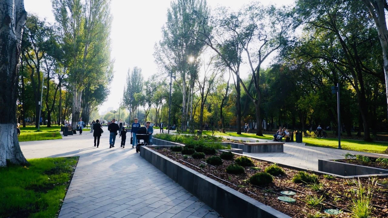 Нельзя не отметить велосипедные дорожки, освещение, удобную парковку, релакс-зоны с гамаками. В парке также растет около 1500 деревьев и кустарников: сирень, жасмин, можжевельник, барбарис, айва. Для жителей предусмотрели новые комфортные туалеты.