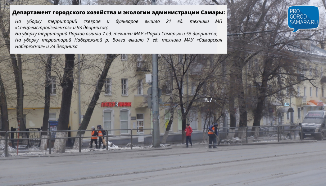 - В Железнодорожном районе в эти выходные планируется выход порядка 300 дворников, к работе они приступят не позднее 6 утра. Ответственным службам поставлена задача организовать противогололедную обработку территорий по погодным условиям, в первую очередь, на выходах из подъездов, тротуарных дорожках во дворах, подходах к учреждениям соцсферы, - ранее сообщила заместитель главы Железнодорожного внутригородского района Самары Ольга Анцева