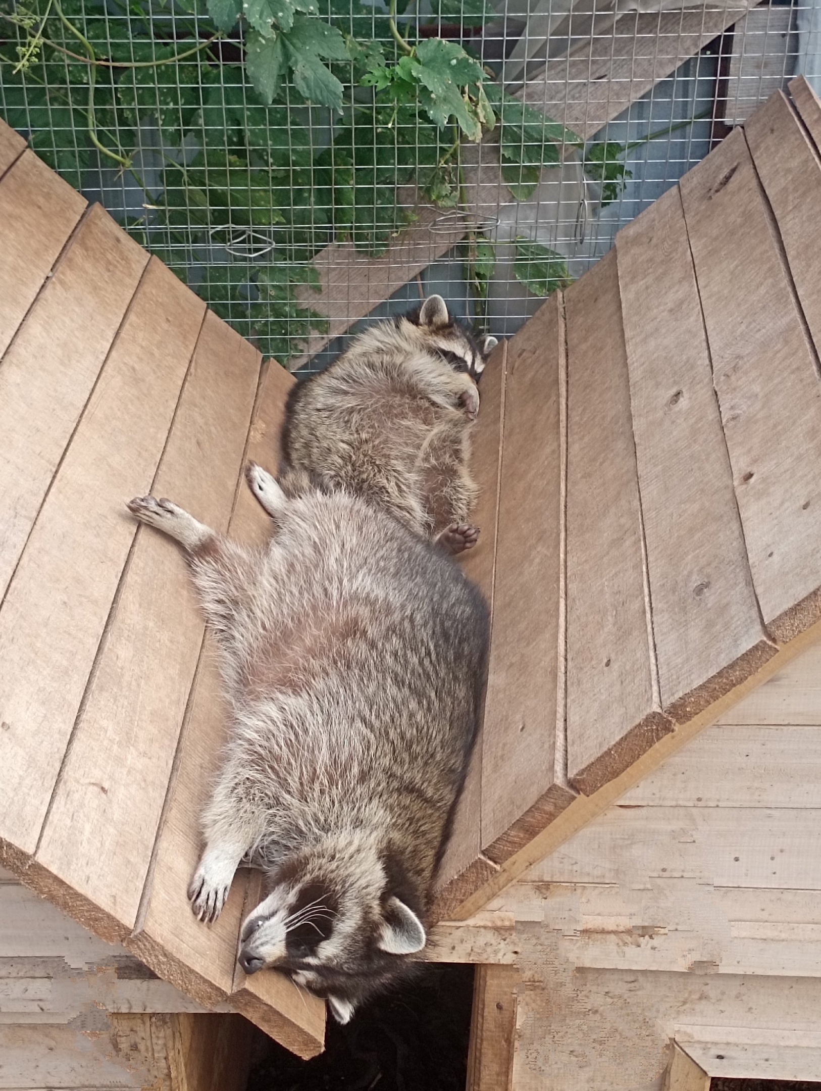 — Муж назвал девочку Зинаида, а мальчика я назвала Степан. Они из разных семей, разница в возрасте в несколько дней. Ухаживали мы за енотами, как за маленькими детьми. Кормили по часам с бутылочки и постоянно няньчили их. Они были очень милые, постоянно мурлыкали и часто засыпали. Еноты подросли, супруг построил для них большой вольер, и мы переселили их на улицу. По характеру они очень отличаются. Зинаида более шустрая, строгая. Степан милый толстенький добряк, любит поспать и вкусно покушать. Но в целом они друг друга дополняют и заботятся друг о друге.
