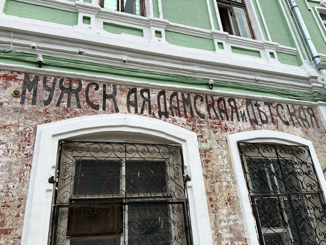 Что же рекламировали на фасаде в дореволюционные годы? «Обувь мужская, дамская и детская + галоши». Об этом стало известно в ходе работ команды «Надо сохранить».