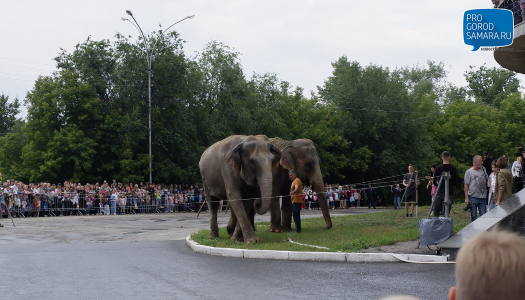 В центре Самары разгуливали два огромных слона: дети плакали, их мамы кричали, - специальный репортаж