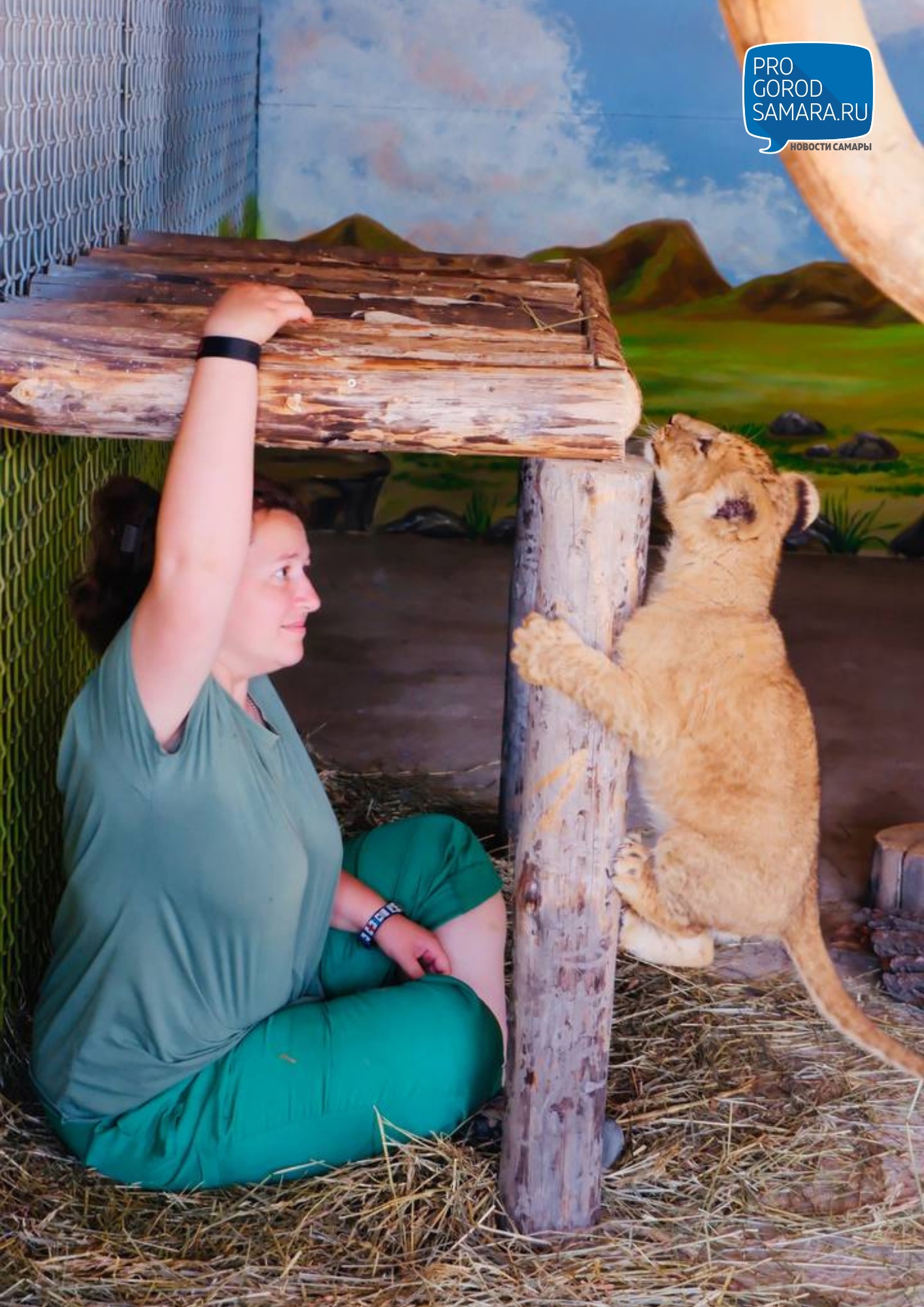 "Любит ласкаться и облизывать щеки": показываем, как живет львёнок Алтай в Самарском зоопарке