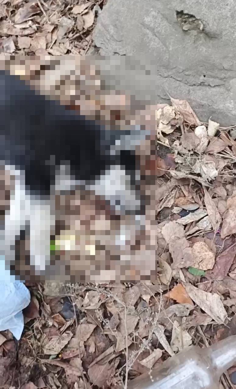 Также в распоряжении редакции появились кадры с места, где были обнаружены трупы собак. Мы не можем показать их полностью, так как зрелище явно не для слабонервных.