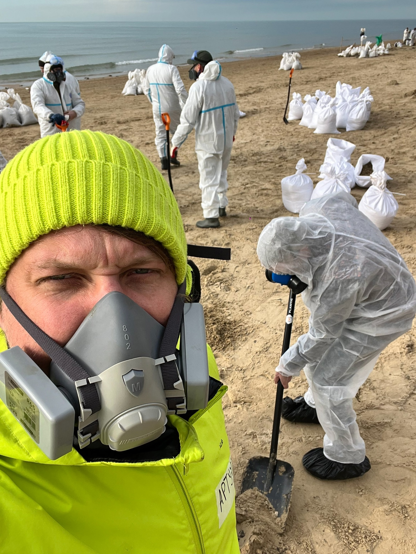 — Я взял с собой коробку респираторов, комплекты фильтров. Уже раздал какое-то количество волонтерам. На днях я гулял с фонариком по берегу и ловил птиц без респиратора. Конечно, потом я себя чувствовал очень плохо. А когда еще на солнце с мужиками таскаешь мешки с мазутом и грузишь их…
