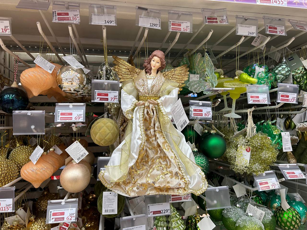 Уже на пороге магазин встречает нас главными новогодними товарами — елочными игрушками. Специально для тех, кто собрался с силами и выкинул старые обшарпанные украшения, здесь собрали огромное количество шаров и фигурок.