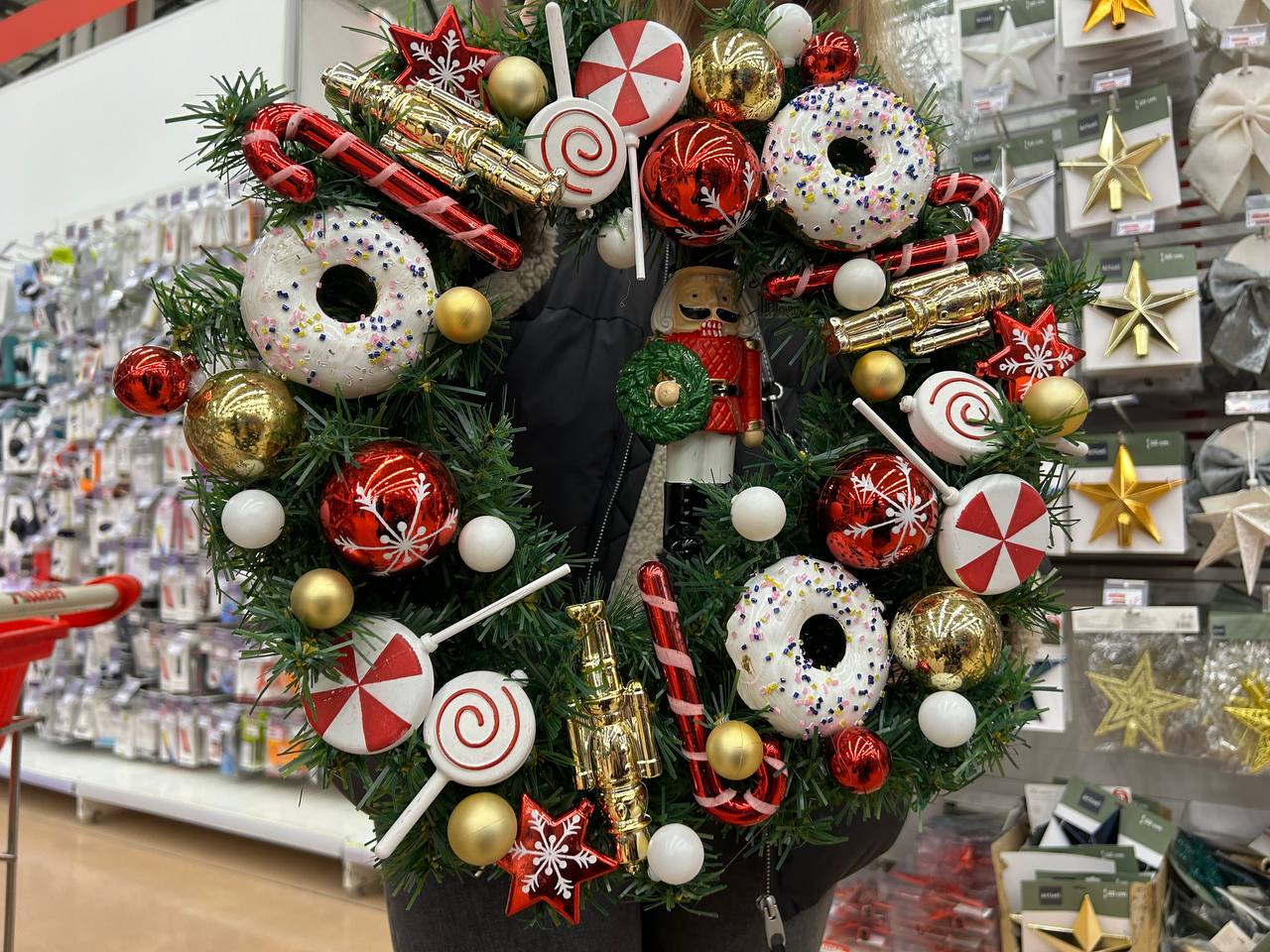 С каждым годом всю большую популярность набирают венки на дверь. Насмотревшись новогодних фильмов, люди бегут в магазины в поисках красивого елочного венка, но чаще всего натыкаются на ритуальную несуразацу. В «Ашане» ситуация не лучше, чем в других местах – вариантов много, но достойных практически нет.