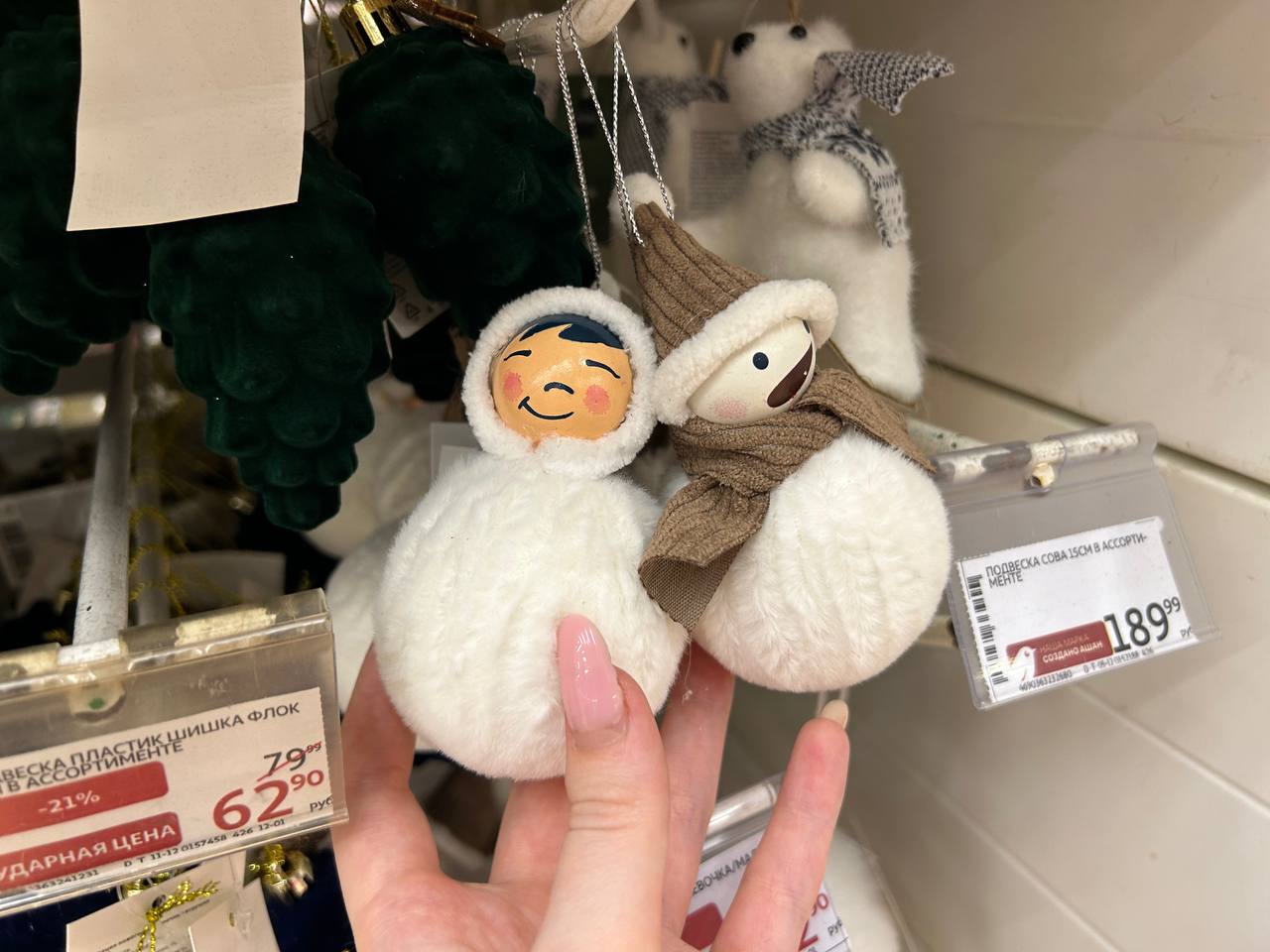 Есть в «Ашане» варианты и максималистов. Тридцатисантиметровая игрушка смотрится, конечно, эффектно, но стоит помнить о том, что не каждая елочная ветвь выдержит такой вес.