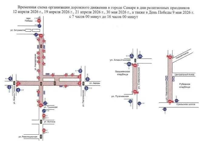 По информации Департамента транспорта администрации города Самары, для безопасной организации движения, разворота и стоянки автобусов в указанные дни планируется ввести временное ограничение движения с 07:00 до 16:00 по следующим участкам улично-дорожной сети: