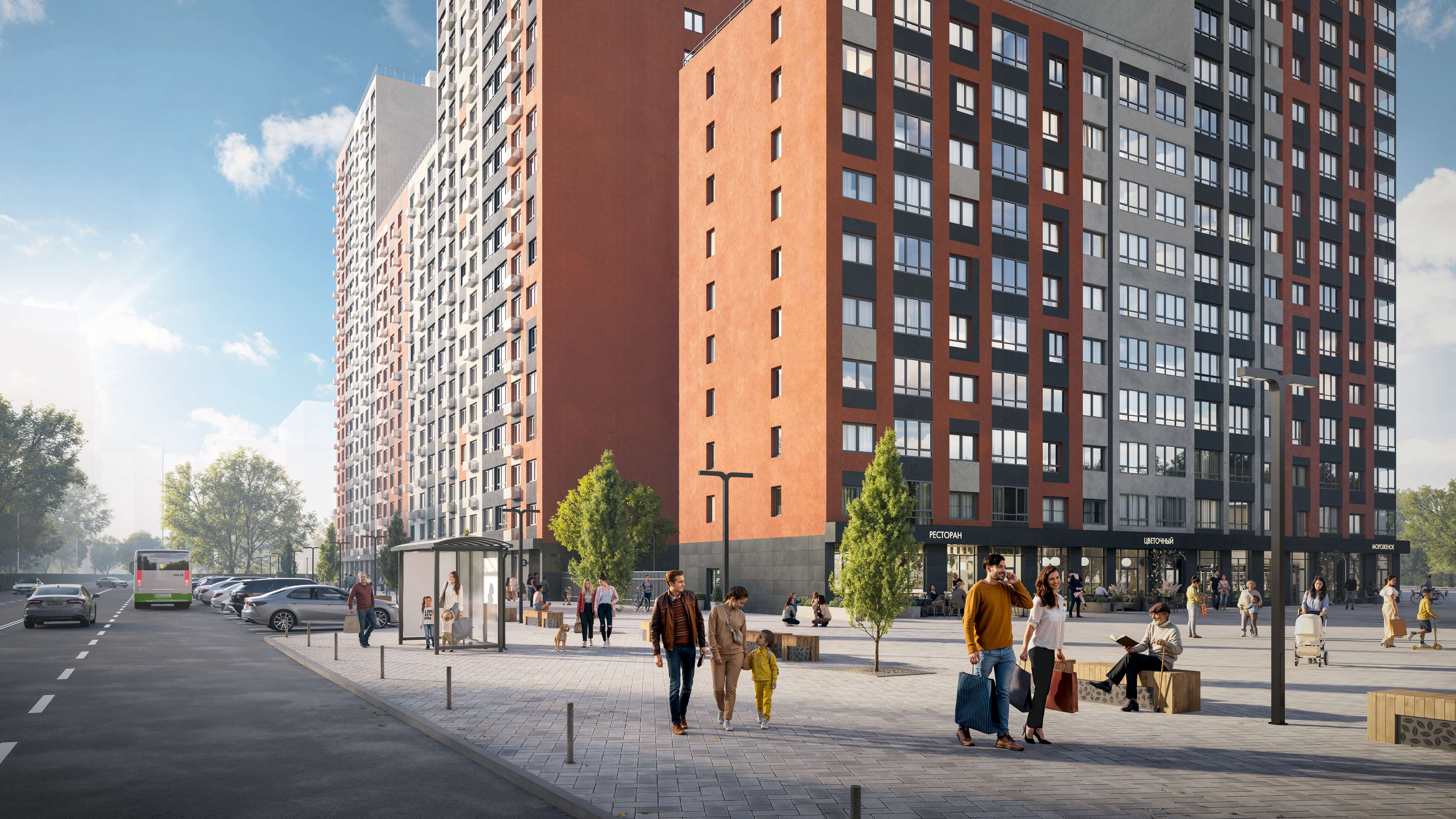 Переменная этажность — от 10 до 24 этажей — позволяет обеспечить естественное освещение помещений и формирует выразительный силуэт застройки.