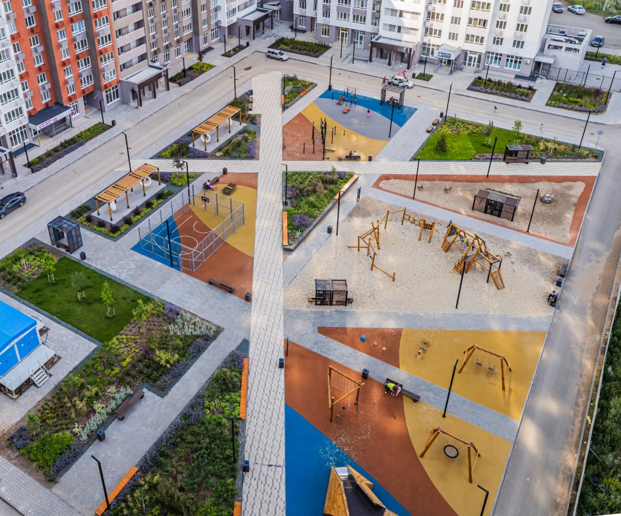 Например, в макрорайоне макрорайоне «Амград» нижние этажи позволяют наблюдать за жизнью двора: из окон видно детские площадки, прогулочные аллеи и зеленые зоны. Родители могут следить за детьми во время игр, а жители — наблюдать за сменой сезонов в благоустроенном дворе.