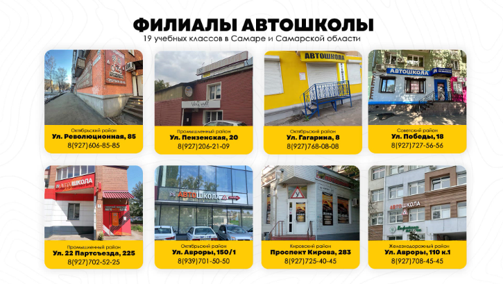 Что еще важно? Конечно, возможность обучаться рядом с работой или домом, чтобы не тратить часы на дорогу. Самарская автошкола «Автомотоклуб» — это 19 учебных классов по Самаре и региону, что позволяет проходить обучение максимально удобно.