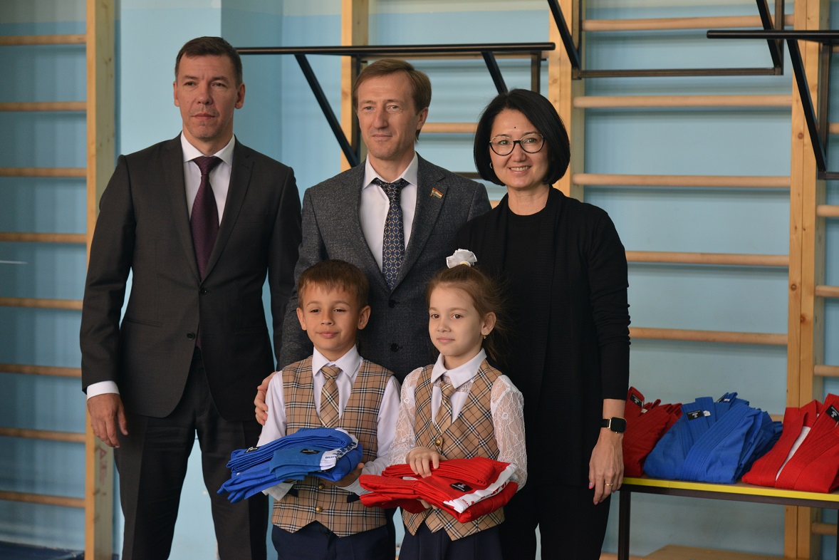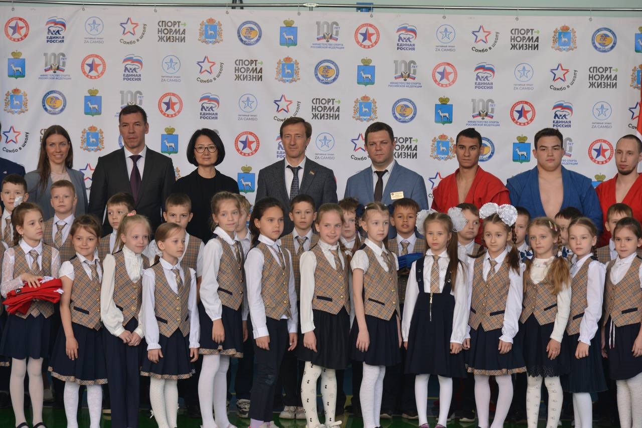 После показательных выступлений самарских борцов, будущие самбисты дали клятву спортсмена и получили в подарок комплекты новой спортивной формы - для мальчиков и для девочек. Новая форма стала подарком от губернатора Самарской области Дмитрия Азарова, вручил его координатор партийного проекта «За самбо» в регионе, руководитель фракции «Единая Россия» в Самарской губернской думе Александр Живайкин.