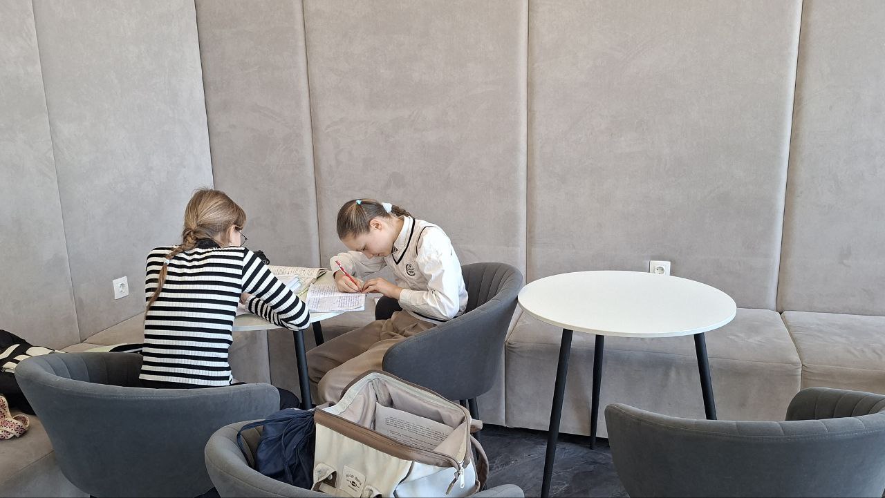 Нам как раз удалось застать двоих девочек в центре, они занимались домашним заданием.
