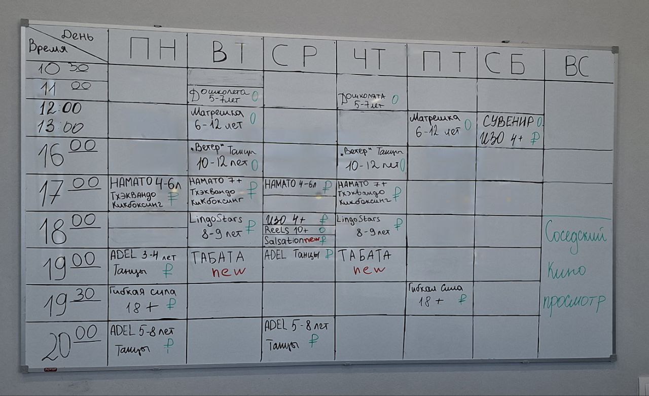 На входе в Соседский центр висит доска с расписанием занятий, где все распределено по времени. Есть занятия бесплатные, есть коммерческие – каждый выбирает что нравится. При этом жители и сами помогают центру – на новый год сами украсили помещение, а после праздников – сами разобрали и навели порядок. И это не единичный случай, когда жильцы «приходили на помощь» центру.