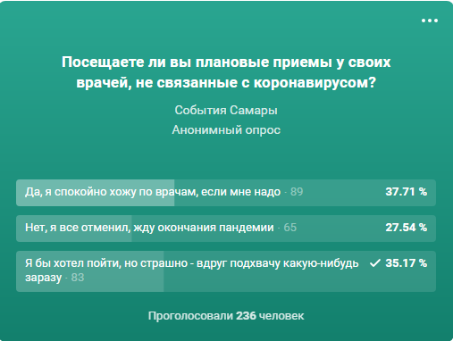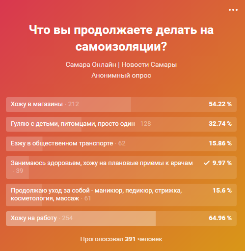 Как видим - в Самаре особая тенденция - при всём страхе к коронавирусу мы ходим по магазинам и на маникюр, мчимся на Набережную, но избегаем посещения медицинских учреждений из-за страха заболеть именно там.