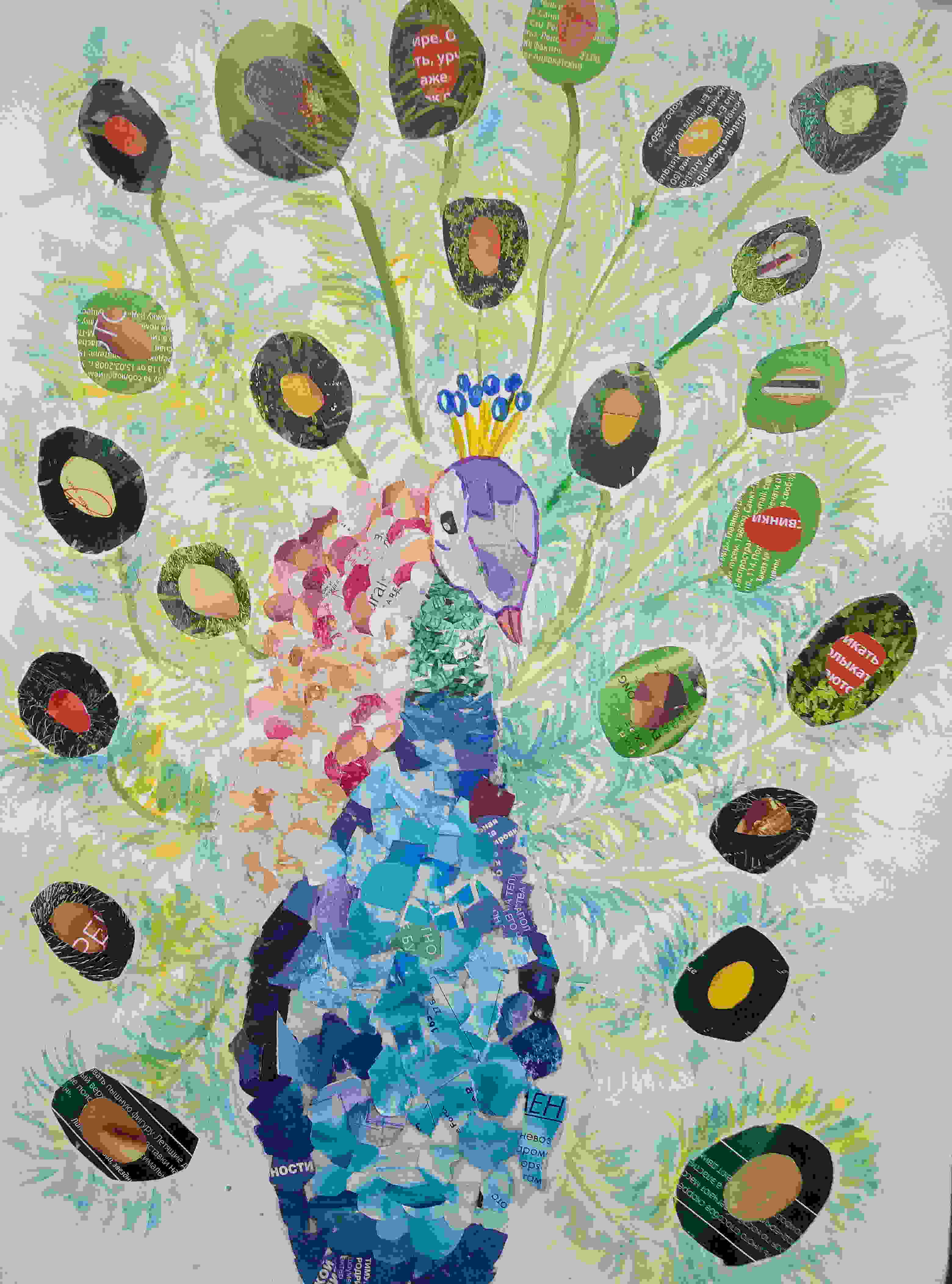 В конкурсе на цифровой образовательной платформе МТС «Поколение М» принимали участие дети в возрасте 6 – 10 лет со всей России. Ребята смотрели цикл мастер-классов, в которых герои «Смешариков» рассказывают об истории живописи, а художник показывает, как создать свой шедевр в соответствии с канонами того или иного направления – реализма, импрессионизма или, например, сюрреализма. Жюри конкурса из большого количества заявок отметили работу юной жительницы Сызрани Маргариты Рогушиной. Она изобразила павлина в необычной для детского конкурса технике коллажа.