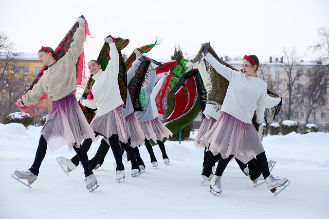 Флэш-моб прошел в рамках фестиваля танцев на льду «Мы вместе!», посвященного Году единства народов России.