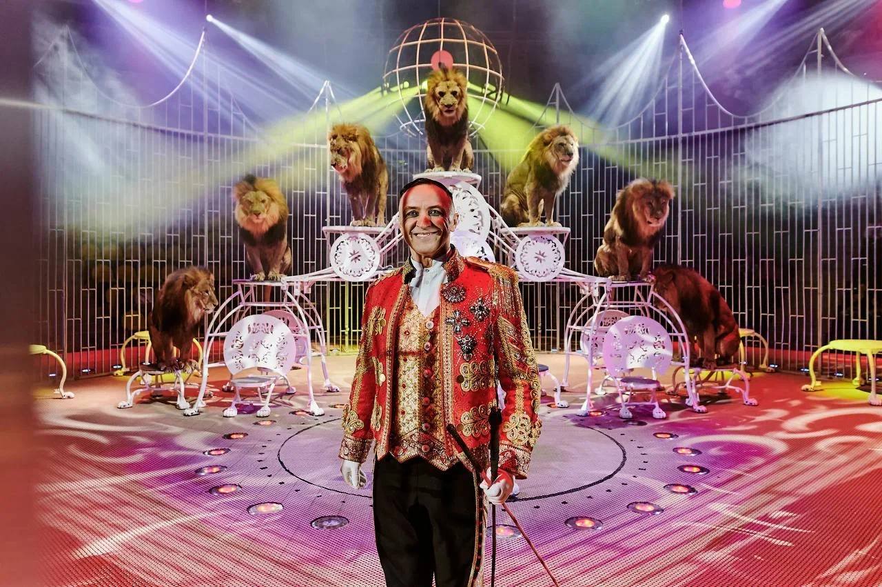 Кульминацией шоу стало выступление Владислава Гончарова – дрессировщика львов. Он является обладателем высшей цирковой награды – Серебряного клоуна фестиваля в Монте-Карло. Он вышел в клетку к десяти африканским львам.