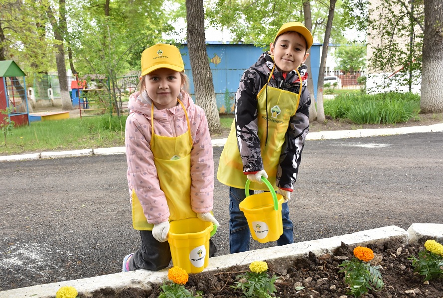 Ребятишкам не пришлось весь урок сидеть «за партами»: вторая часть прошла с пользой для здоровья и окружающей среды на свежем воздухе. Сотрудники Сызранского НПЗ приехали не с пустыми руками – привезли 200 цветущих бархатцев: теперь солнечные клумбы будут все лето радовать воспитанников и педагогов детских садов №57 и №35. А чтобы ребята лучше усвоили урок, им вручили сувениры.