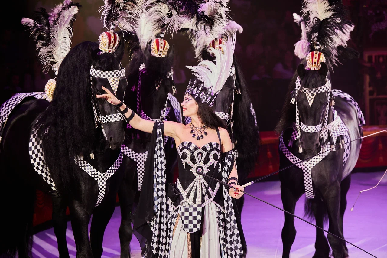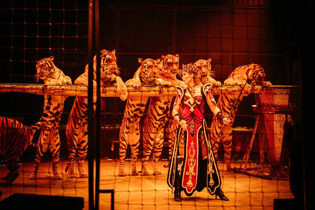 Программа восхищает и разнообразием животных: кавказские яки, лисы, олени и маралы, лошади различных пород и собаки. Особое место в шоу занимает аттракцион с девятью тиграми под руководством Заслуженной артистки РФ Людмилы Сурковой. А в кульминации представления покажут номер воздушных гимнастов на ремнях «Анна», вдохновленный романом Льва Толстого.