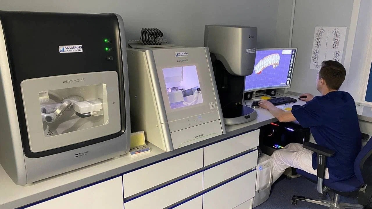 - Современное оборудование: собственная цифровая зуботехническая лаборатория, компьютерный томограф для 3Д-диагностики челюстно-лицевой области, 3D-сканеры для снятия слепков, микроскопы для детальной работы.